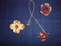 そこには、自然の草・花・葉・実・・・がそのままブローチやペンダント等になって並んでいます。