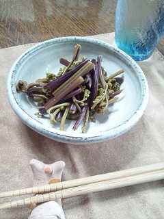 「わらびは、らっきょう酢に漬けたら酒のつまみになるよ。」と聞き、さっそく作って、おいしくいただきました。